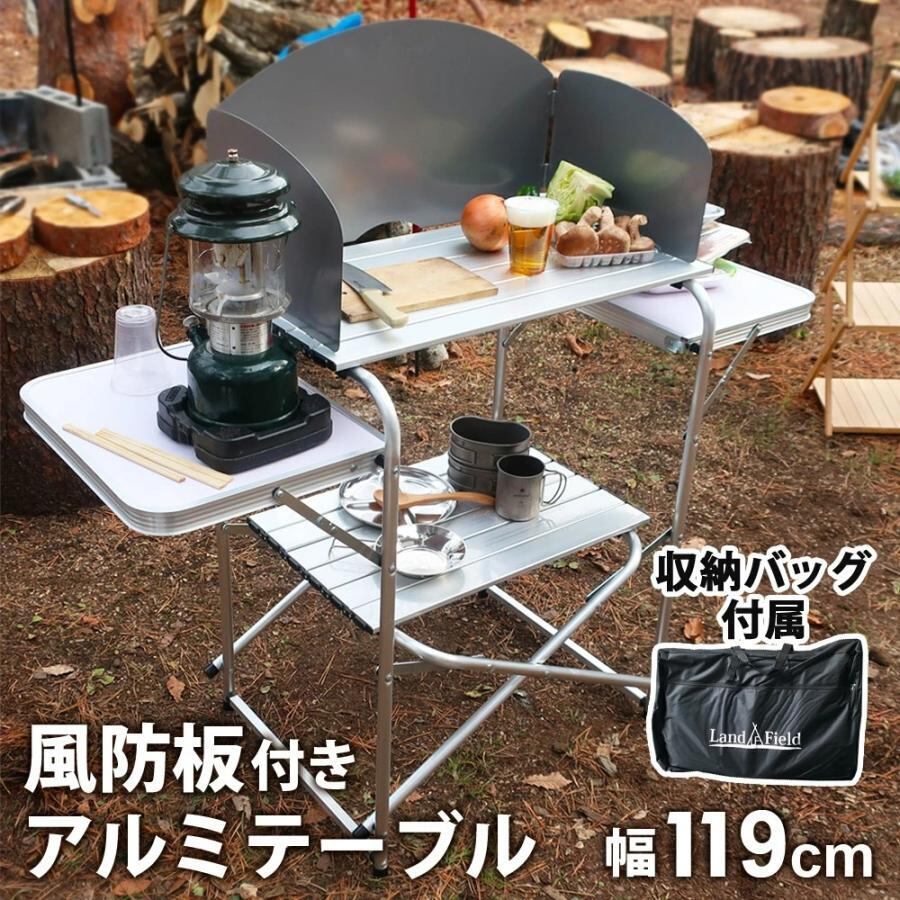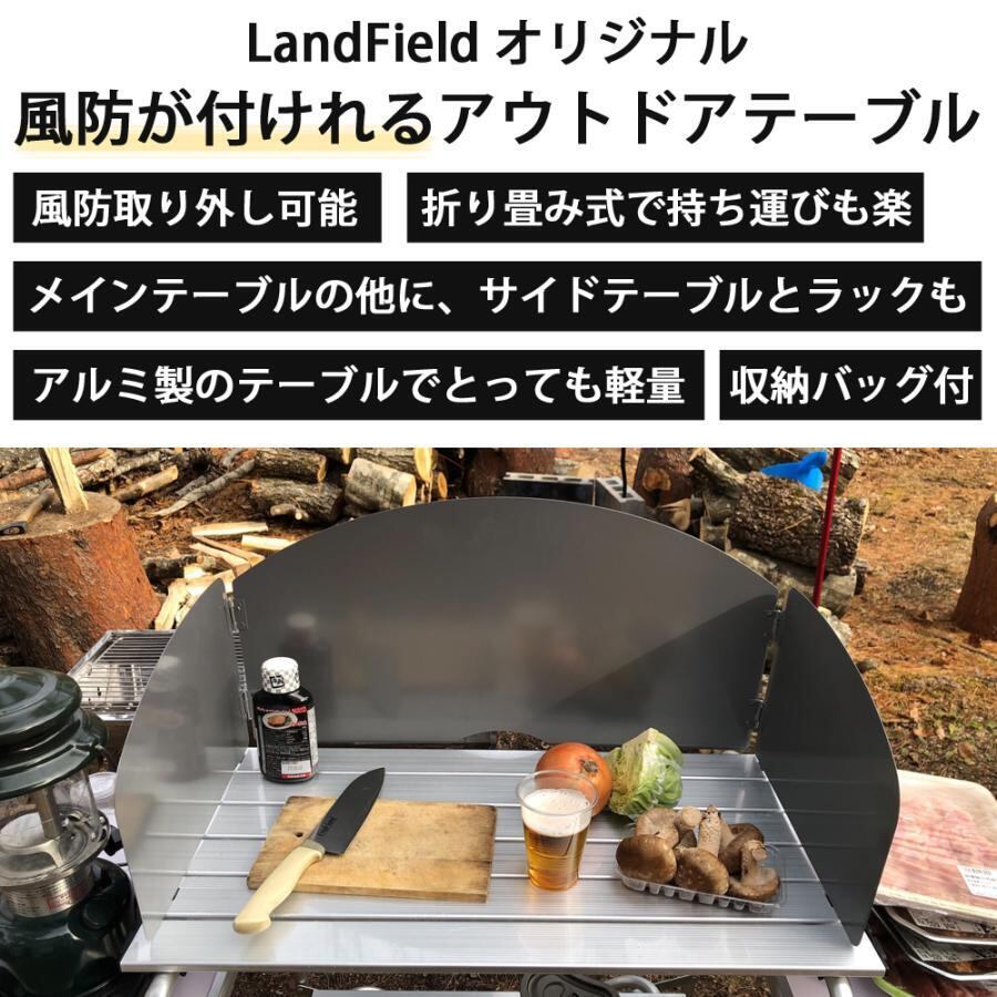 軽量で錆に強いアルミ製のメインテーブルの他に、サイドテーブルとラックも!